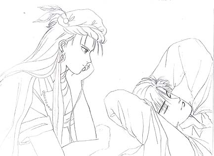 これも文化祭のボードイラストの下書きです(^^; 意外とこのころはちゃ〜んと「男X女」のカップルだったんだよ〜(;-;) 野々宮自身「なんでGxH?(ホモ)」って思うもん(A^^;)
